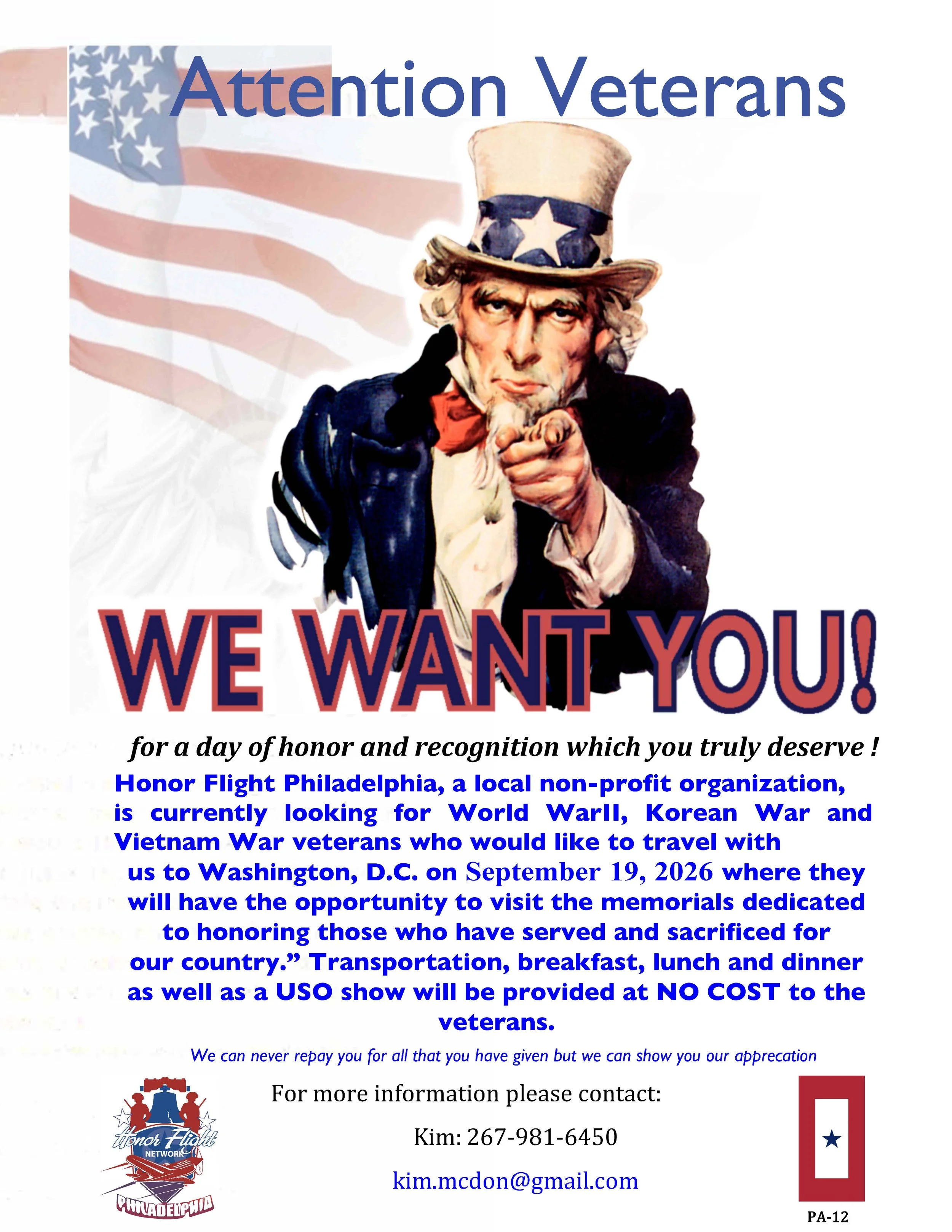 Email: cathy@honorflightphiladelphia.org